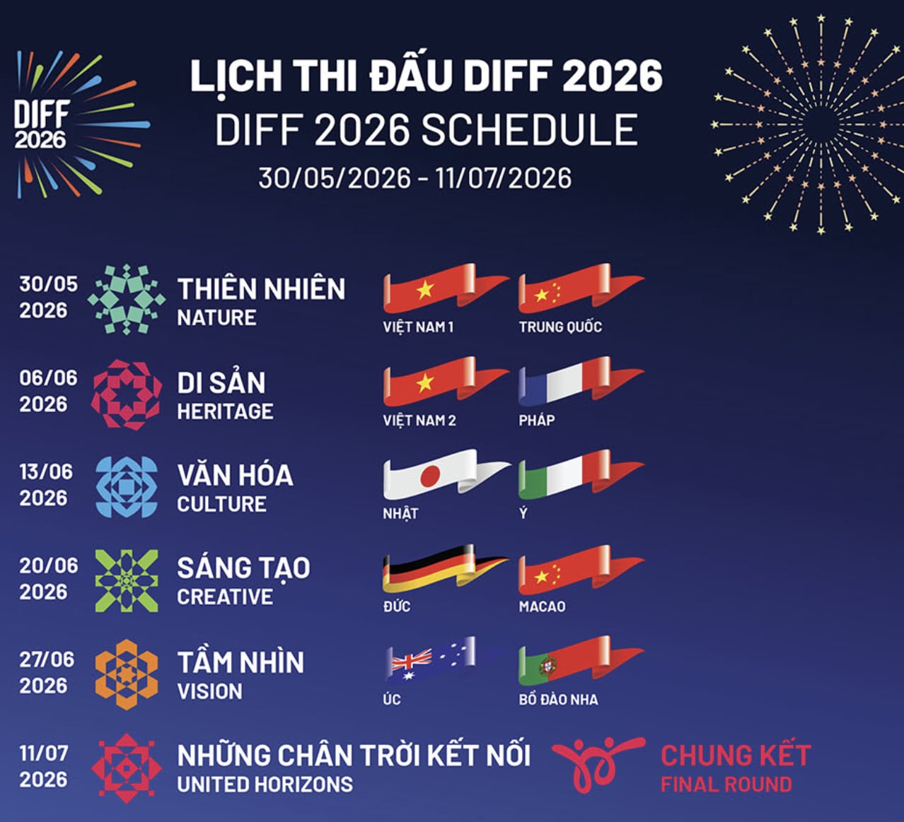 - 11/07/2026 – Chung kết & Bế mạc: United Horizons